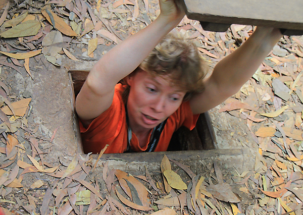 И вот что я вам скажу. Кошмарно там внутри — очень жарко и воздуха нет, от этого реально плохо становится. Я не боюсь пещер, катакомб и тесного пространства. По нескольку дней жила в подмосковных катакомбах, была даже на одной из подземных игр. В Аджимушкае внутрь тоже залезала. У нас везде есть воздух и холодно, и трудно представить, насколько же это хорошо по сравнению с вьетнамскими туннелями. Нет, мы проползли до конца, конечно (одни из немногих), но голову сжало железным обручем от нехватки кислорода, и она потом долго болела. Не знаю, как они там выжили. В Аджимушкае вот все погибли, 10 тысяч бойцов, совершенно самурайская история была.