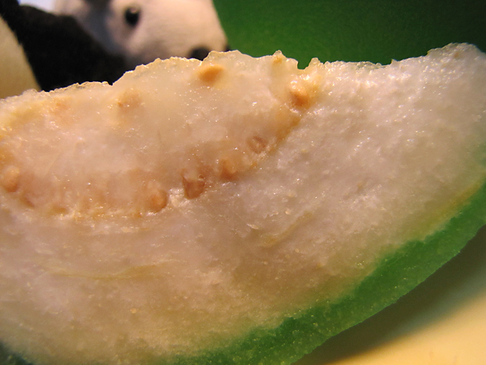 Вообще-то я ее видела раньше, но в Индии это была невзрачного вида невкусная бугристая груша, а в Тае гуава продается в нарезанном виде и тоже успеха как-то не имела.