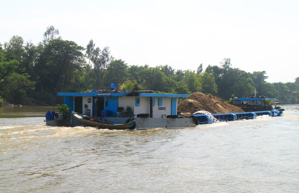 Эта баржа нагружена землей так, что даже небольшая волна захлестнет через борт. Землю регулярно вынимают из каналов, чтобы они оставались проходимыми для судов.