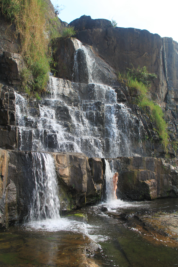 Забравшись подальше, мы нашли закрытое от зрителей место каскада, где можно купаться голышом. А то кое-кто купальник не взял.